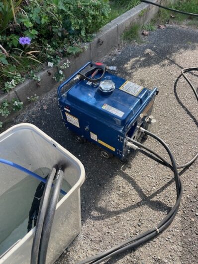 高圧洗浄機を準備して排水管清掃に取り掛かります。