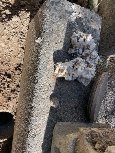 キッチンから流した物がだんだん堆積して油脂が石鹸のように固まります。