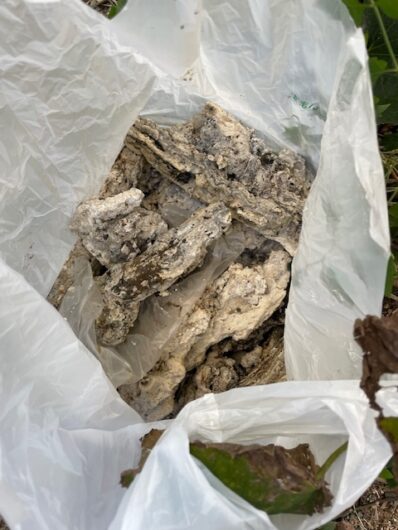 作業を続けていると、袋いっぱいに油脂の塊が出てきました!